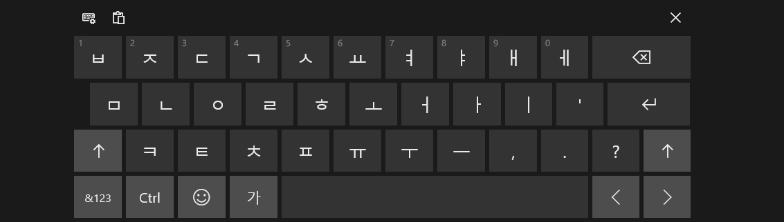 그럼 아래 같이 터치 키보드가 나타나는데요. 키보드의 아무 자판이나 한 두 개 눌러주고 엑스 버튼을 눌러 닫아줍니다.